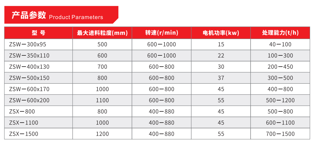 1.梯級(jí)棒條落差大,且棒條設(shè)計(jì)成大小頭結(jié)構(gòu),不易堵料,下料快,具體良好的預(yù)篩分效果;